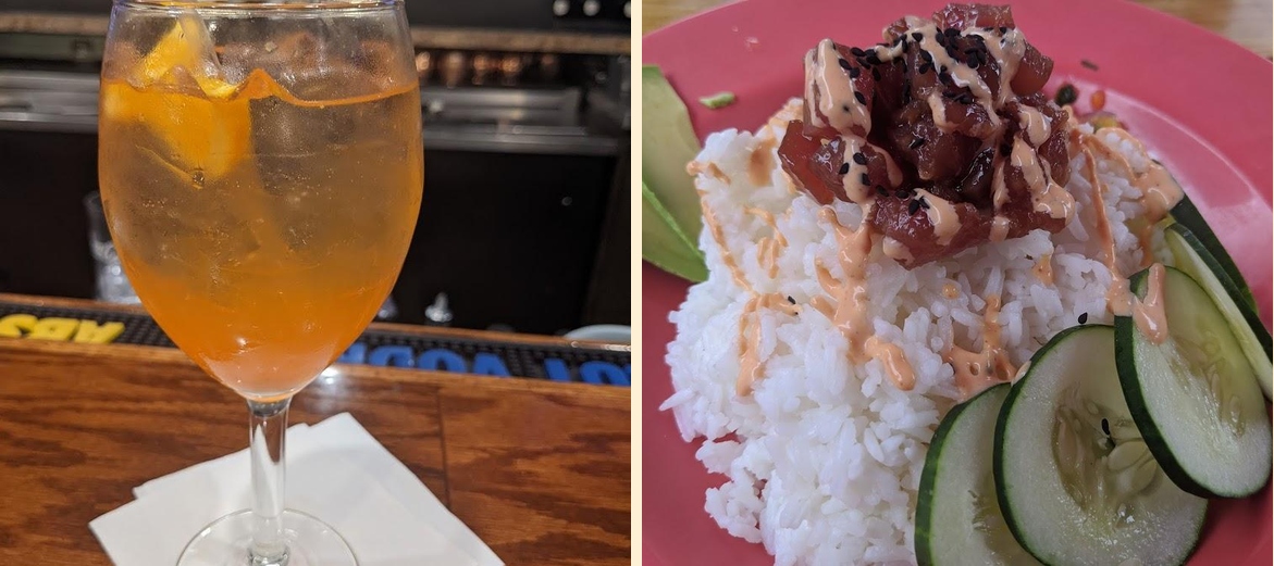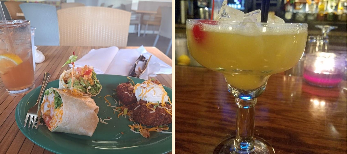 Latitude 35 Bar & Grill serves a variety of dishes. You'll find traditional American favorites, tacos, bowls, sandwiches, and breakfast options. They also feature local specialties, ensuring a diverse menu.